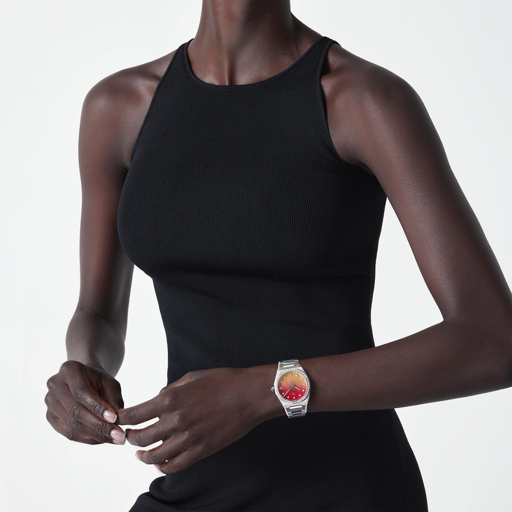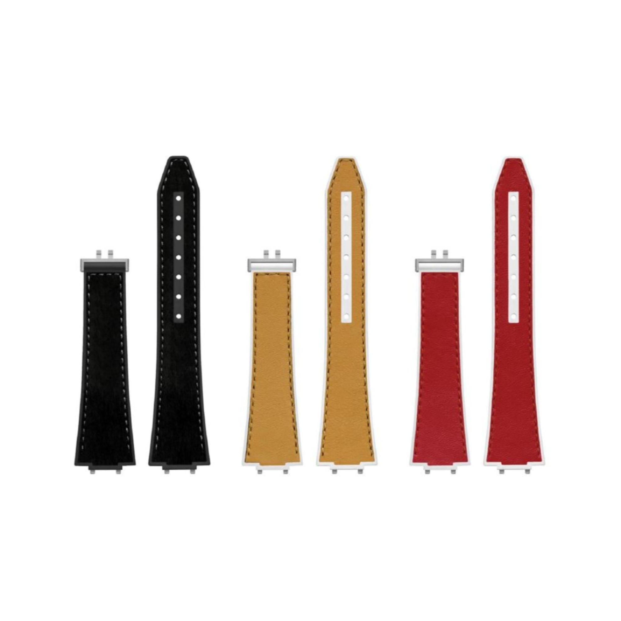 Band: Steel strap. Interchangeable strap system, coming with metal bracelet and 3 additional straps included