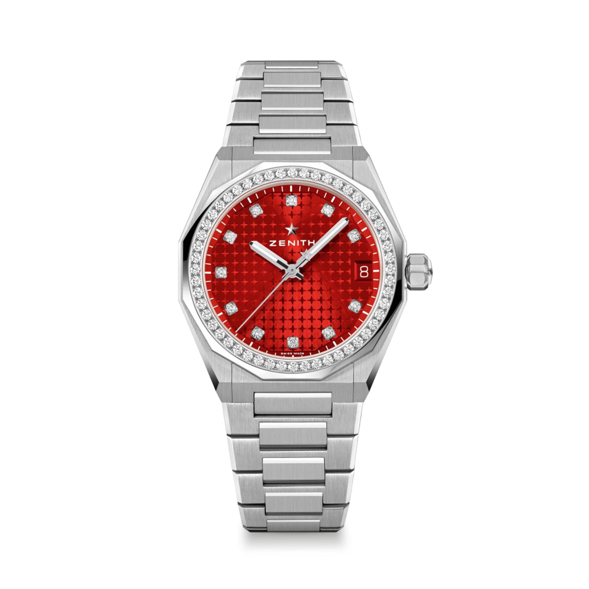 Dial: Red dial with 12 sides diamond set bezel (1.2cts)